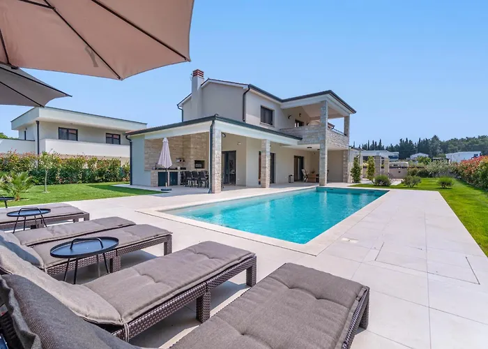 New 2024! Luxury Villa Carlotte With 11M Pool med 4 sovrum, som ligger ungefär 5 minuters bilfärd från Acquario di Parenzo, erbjuder soldäck, solterrass och gemensam lounge för gästerna. Villan med 4 badrum erbjuder en utomhuspool samt avsvalkningspool, där du kan koppla av efter en hektisk dag.